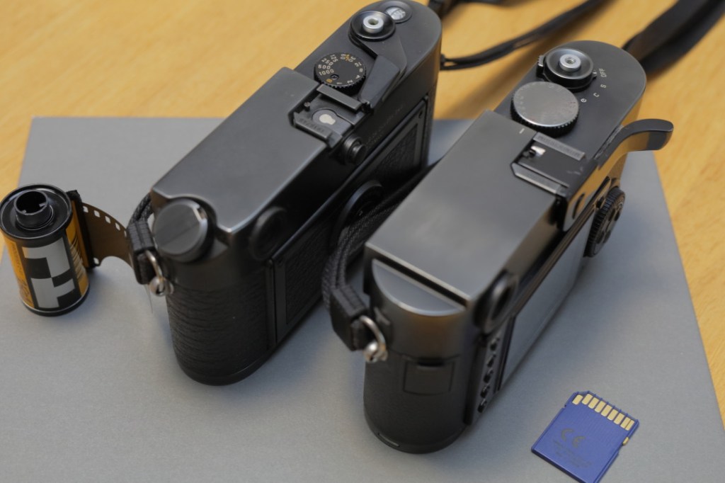 As a matter of fact, it is almost seamless switching between digital and film Leica M. Of course, battery, SD card, roll of film, film wind lever, etc. are not common between two. However, the whole camera operation is pretty consistent with both, which is great about Leica.
